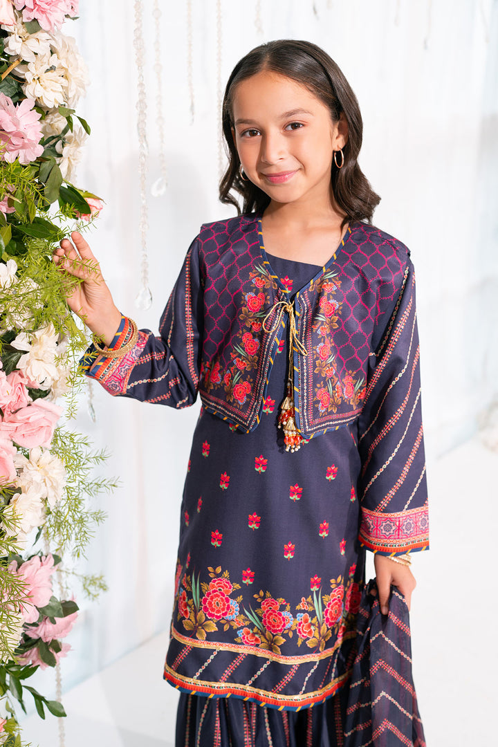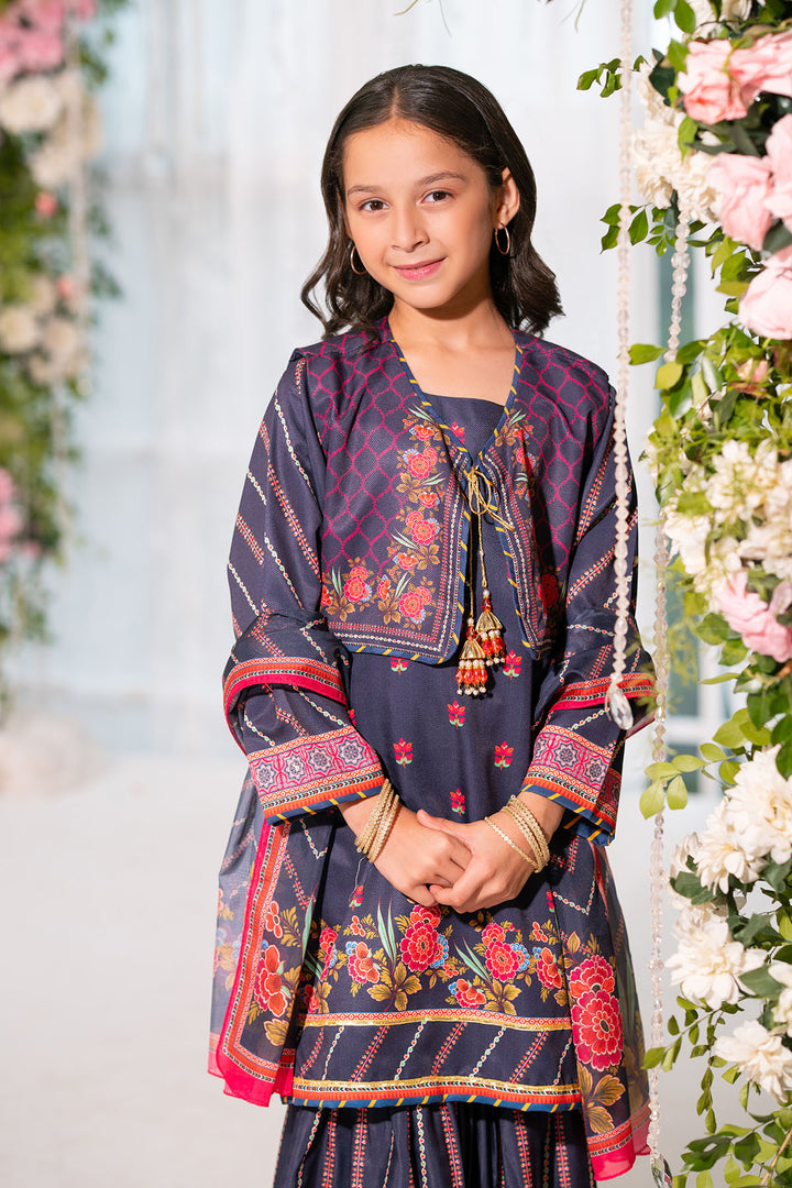 Bottom: Navy Blue Herringbone Digital Printed Gharara
