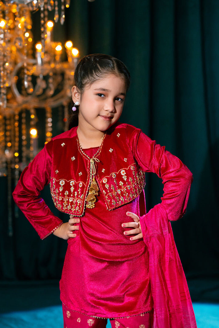 Top: Magenta Pink Velvet Kurta With Hand Adda Work On Koti