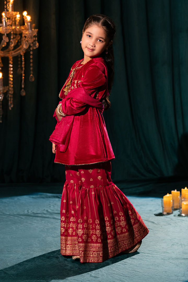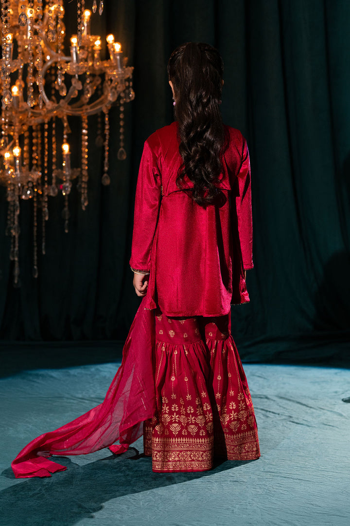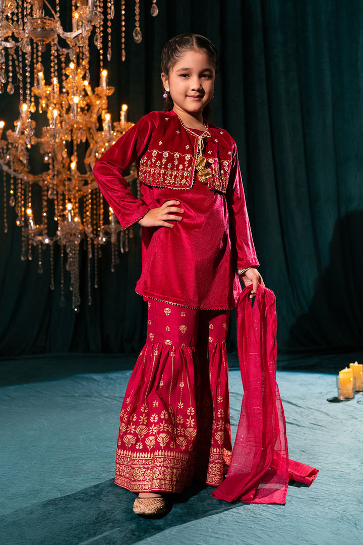 Bottom: Magenta Pink Raw Silk Gharara With Screen Print