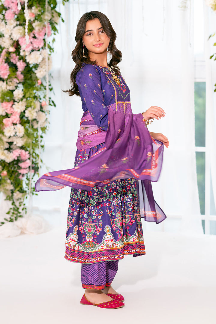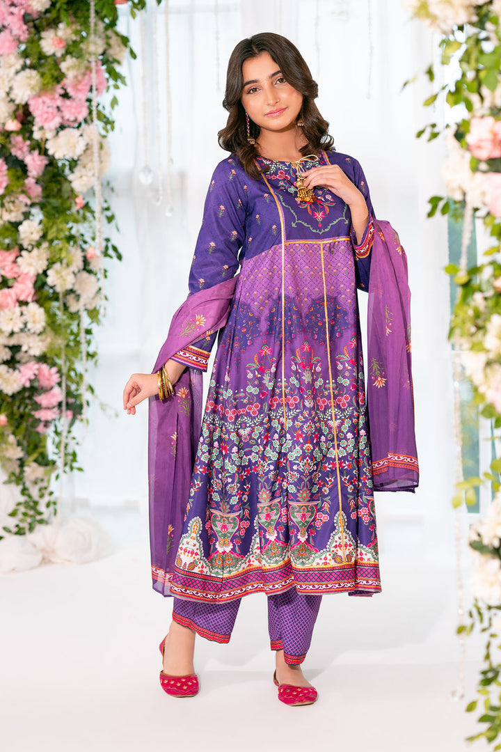 Discover affordable printed dresses for girls in Pakistan. Shop our trendy purple printed suits,
