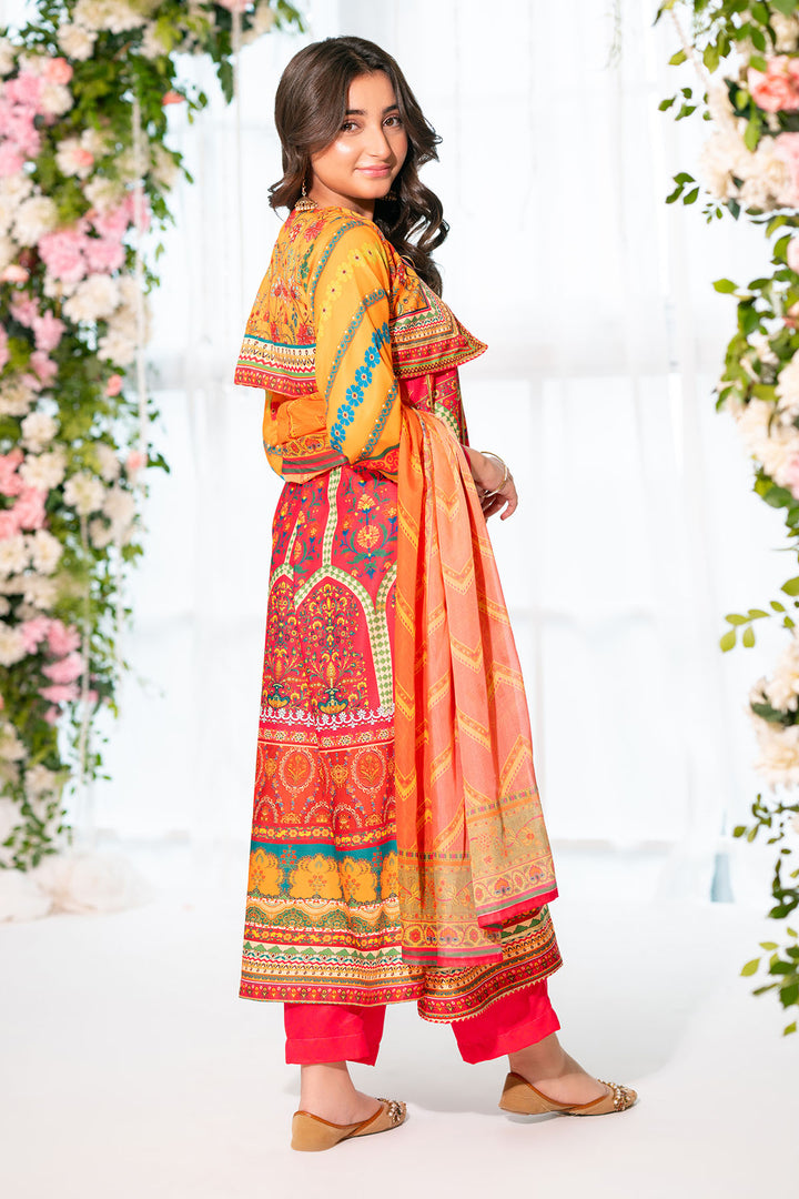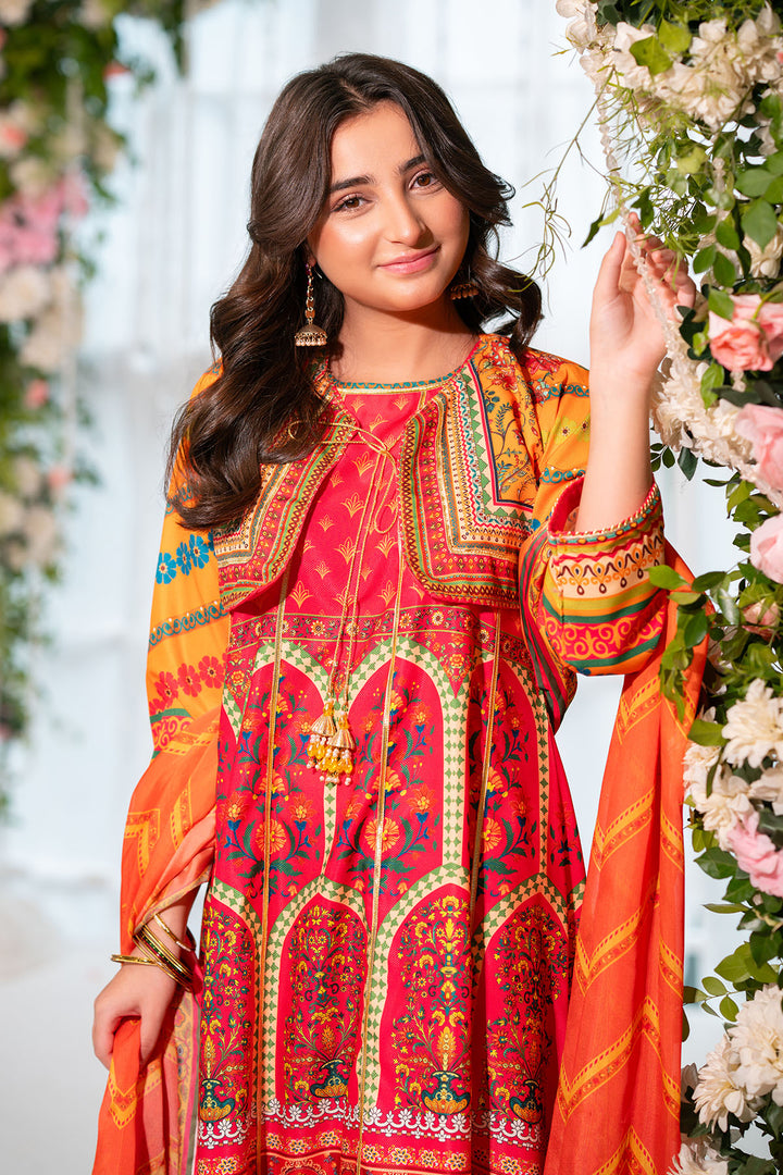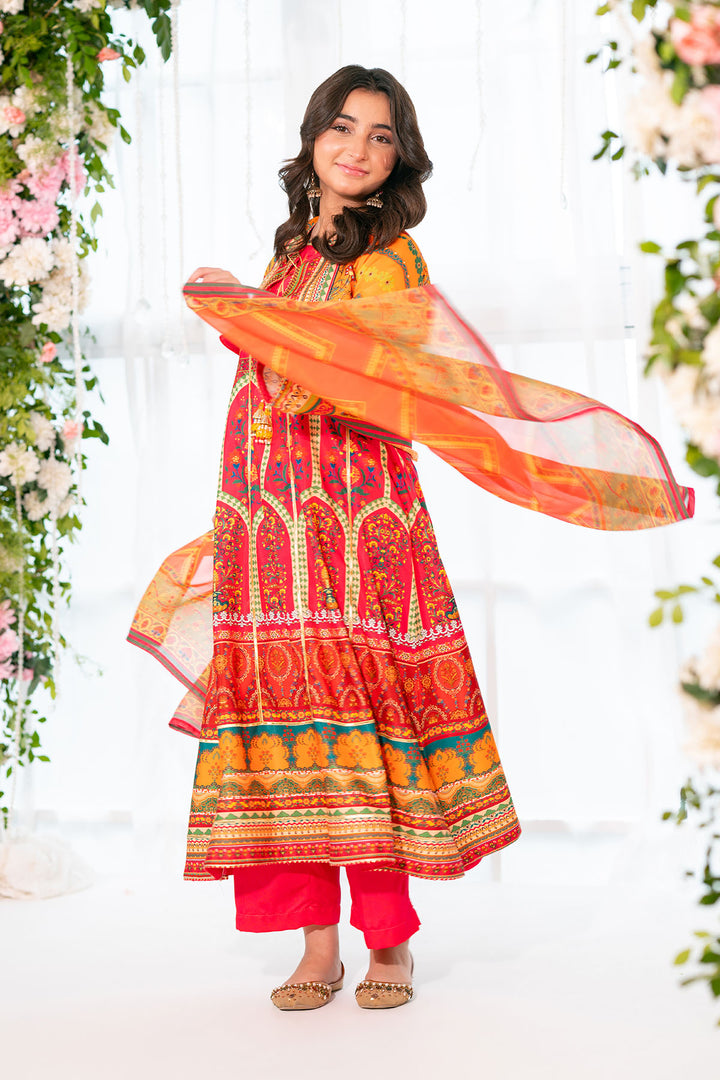 Top: Hot Pink and Orange Herringbone Digital Printed Maxi + Koti with Tassels and Gota Laces