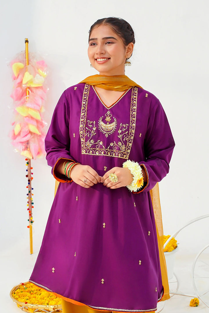 Top: Purple Raw Silk Kurta With Hand Adda Work