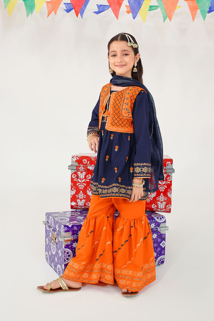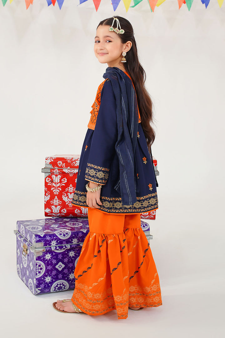 Bottom: Orange Raw Silk Gharara With Screen Print